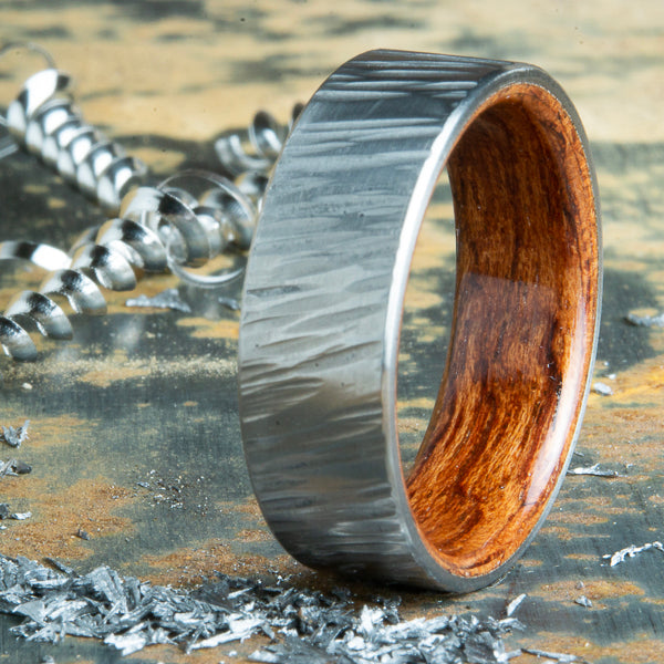 Rugged and Unique, collection of hammered titanium rings are perfect for those looking for a ring with a textured finished. Forged by the crushing blows of a hammer, these rings are pounded into a unique looking ring with great style.