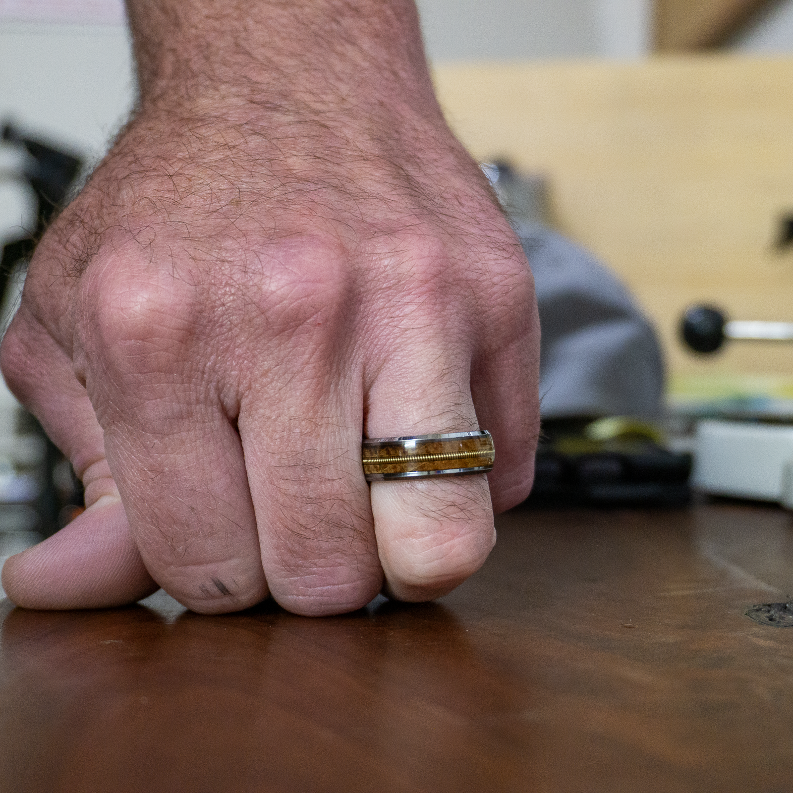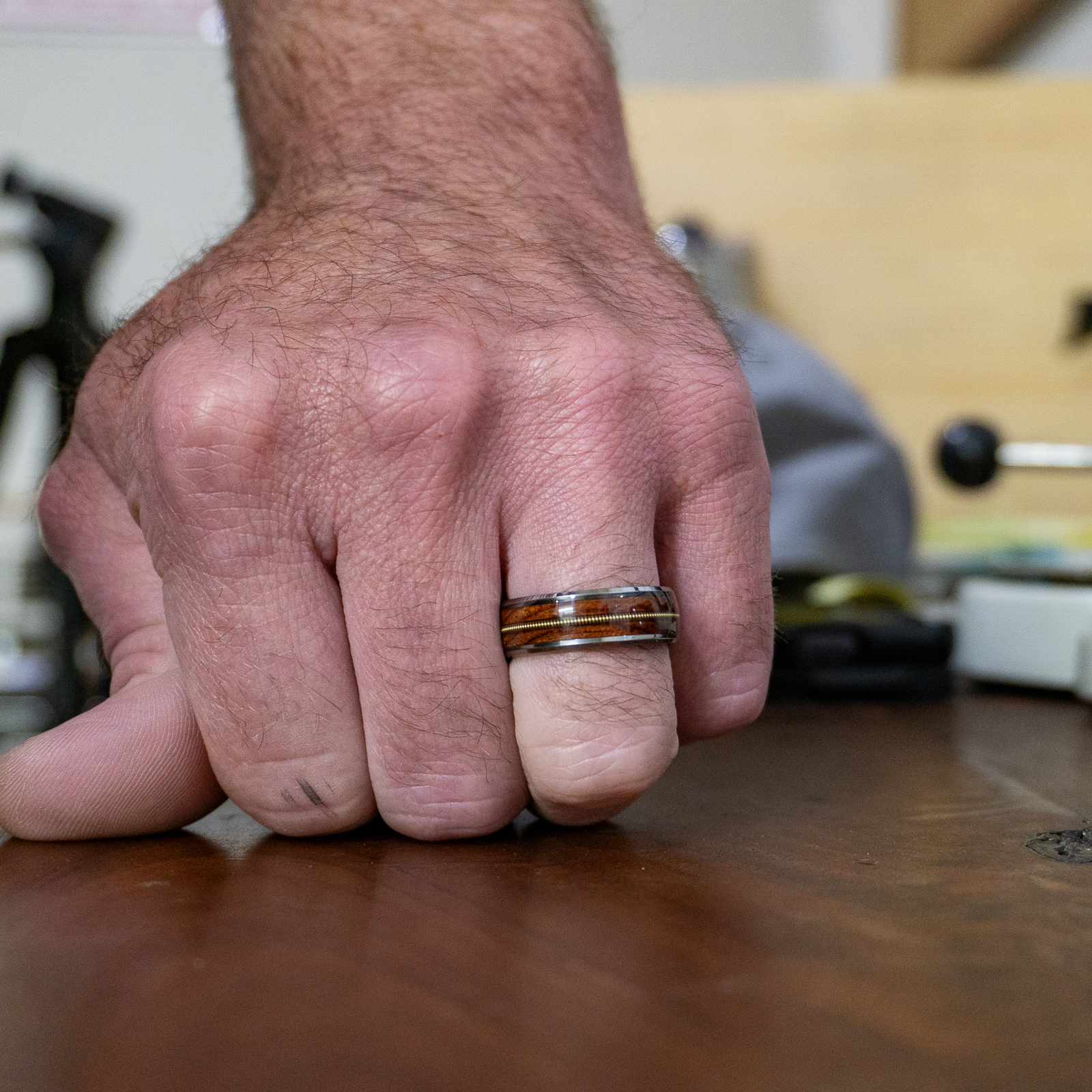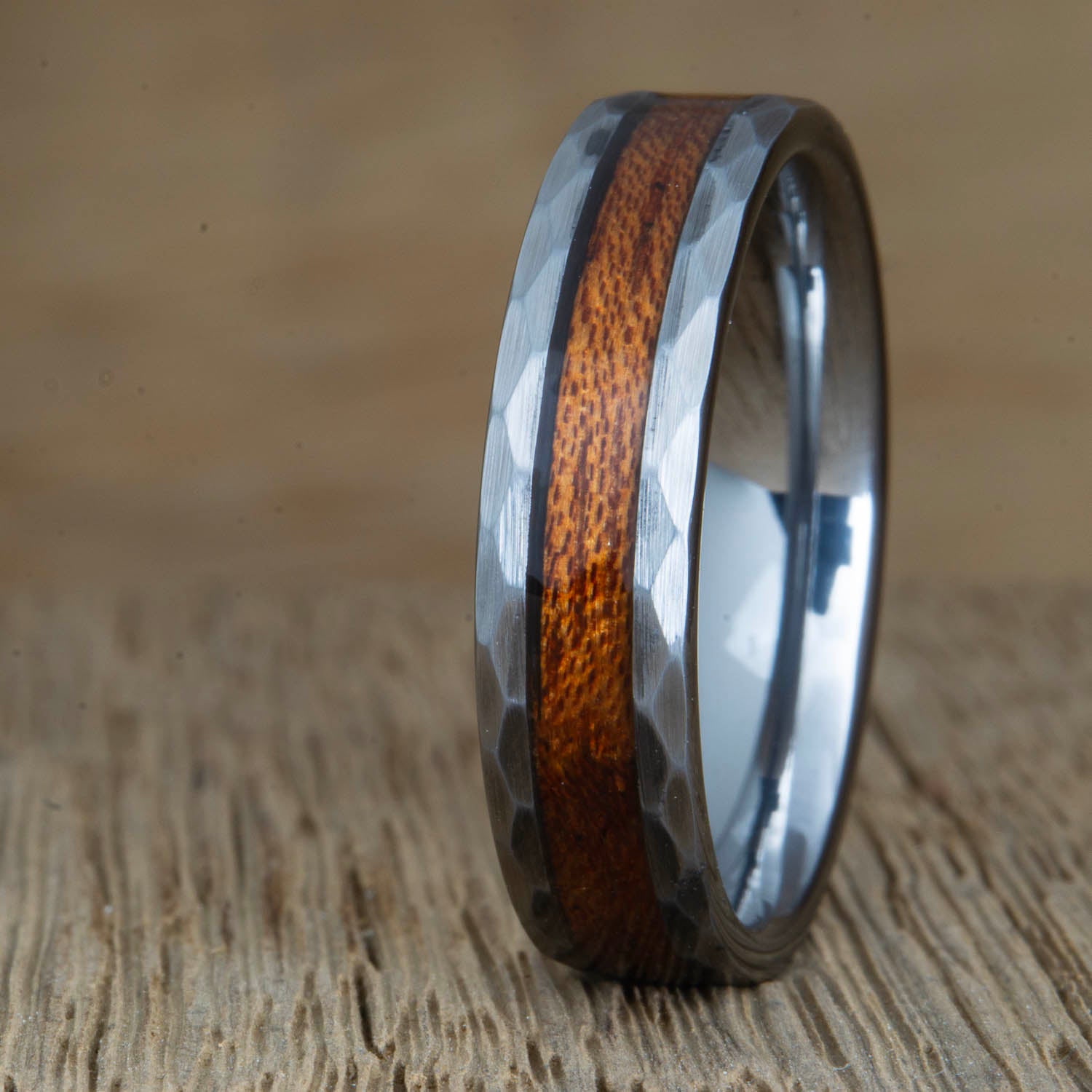We stand by the quality of our men's rings. Each ring comes with a lifetime warranty, providing you the peace of mind that comes with knowing that your ring is made to last. Our rings aren't just accessories - they are heirlooms, meant to be worn, cherished, and enjoyed every day. And with everyday wear will eventually come some signs of use, no worries though. We can refinish, polish, and even replace worn wood on your original ring. This allows you to carry on with daily life and the satisfaction of knowing you will have your ring as long as you like.
