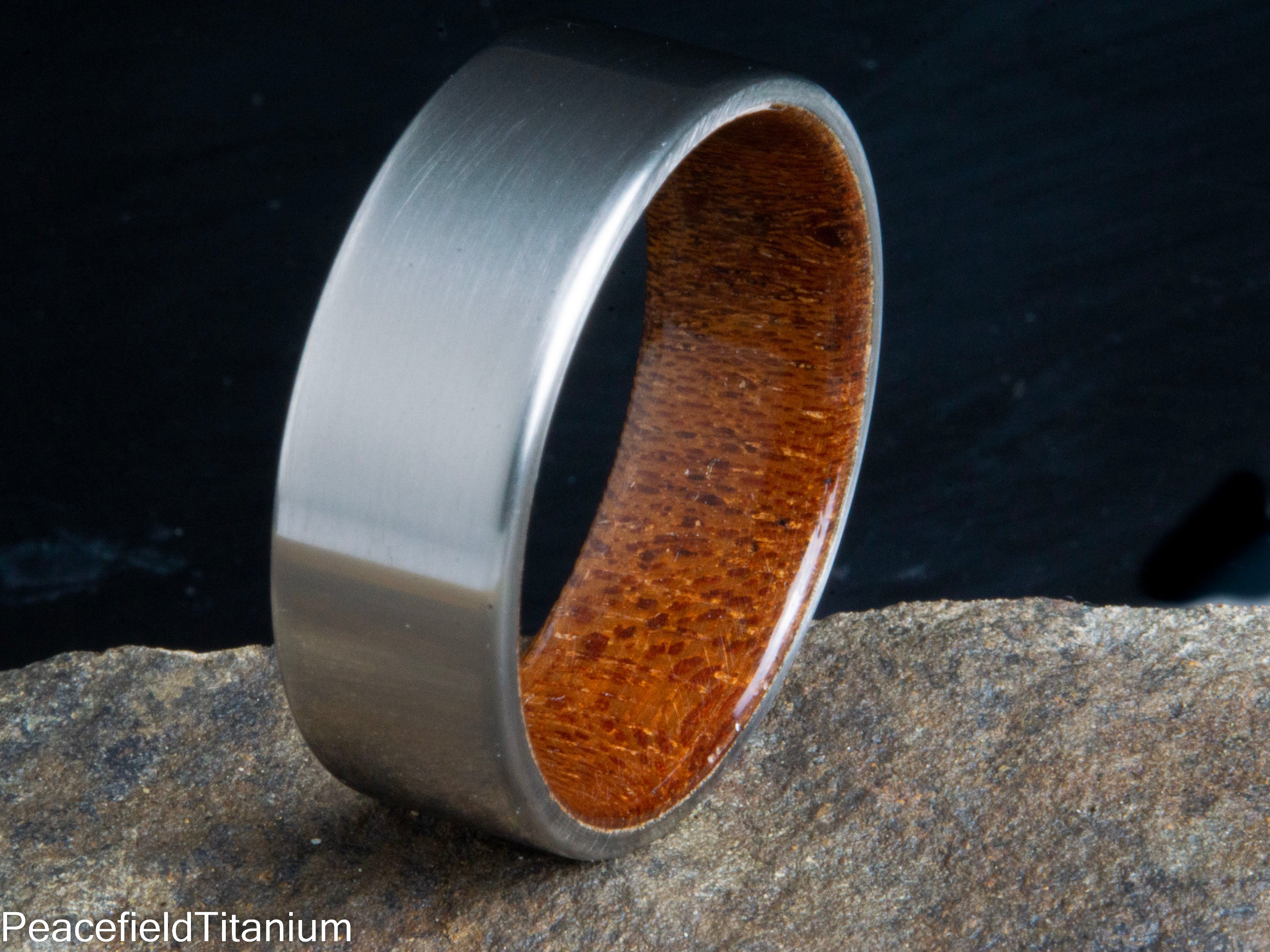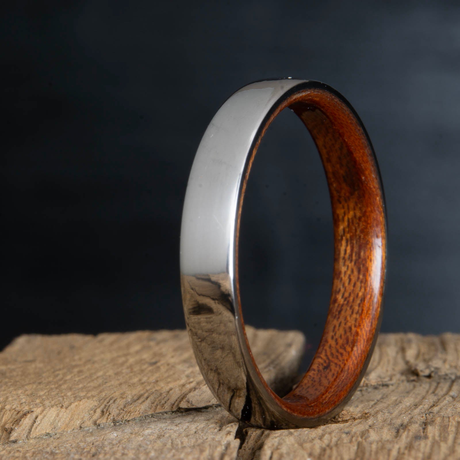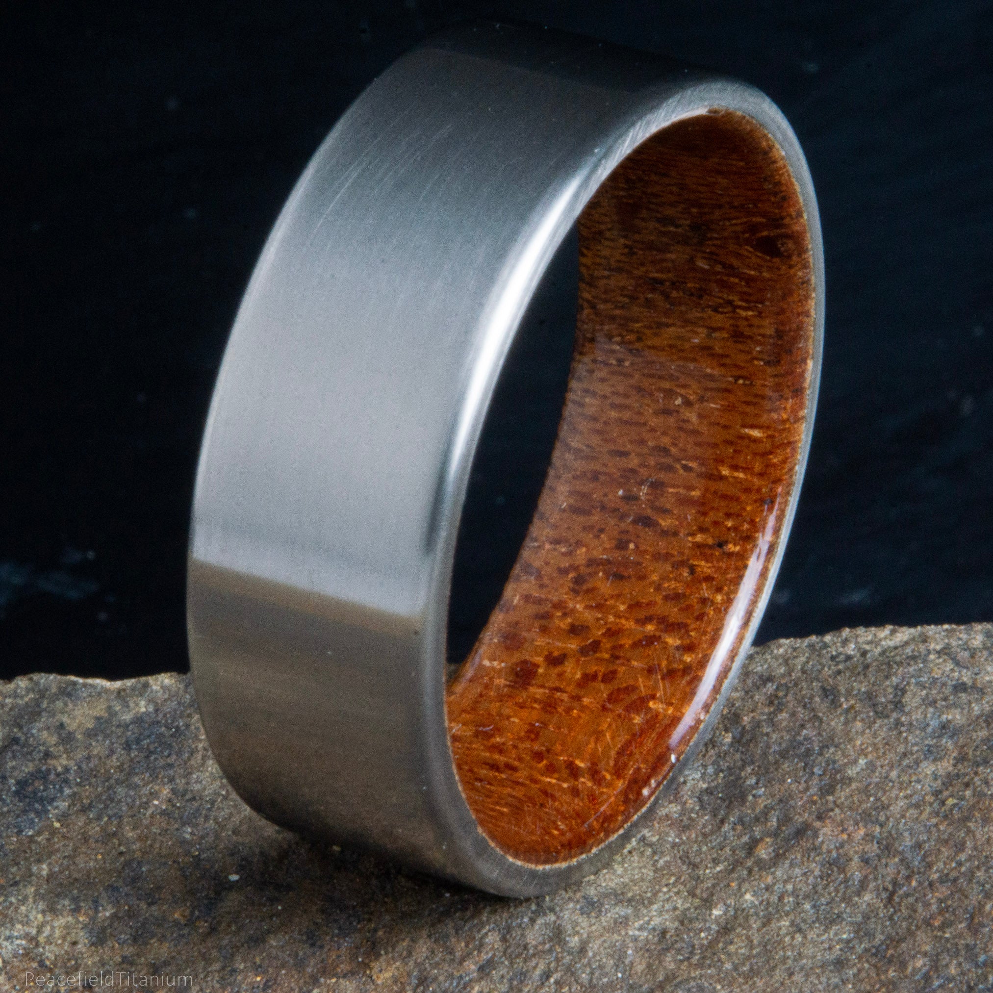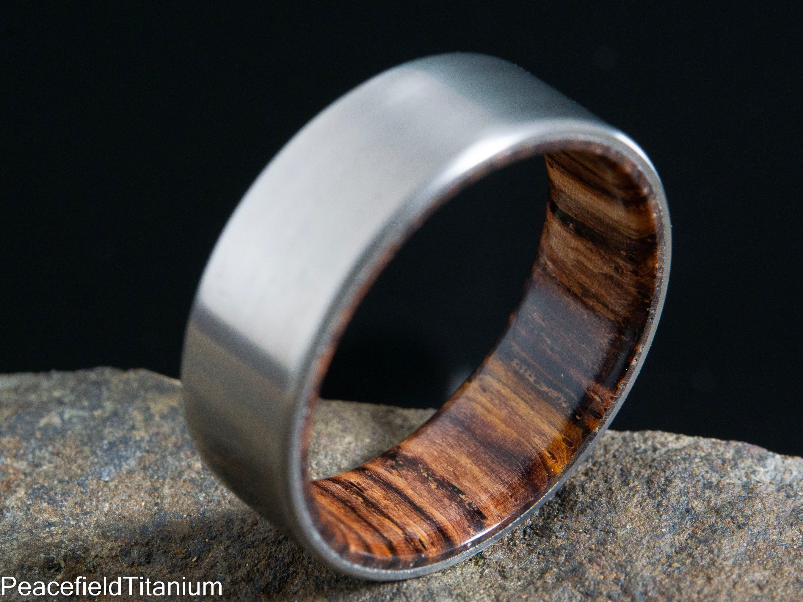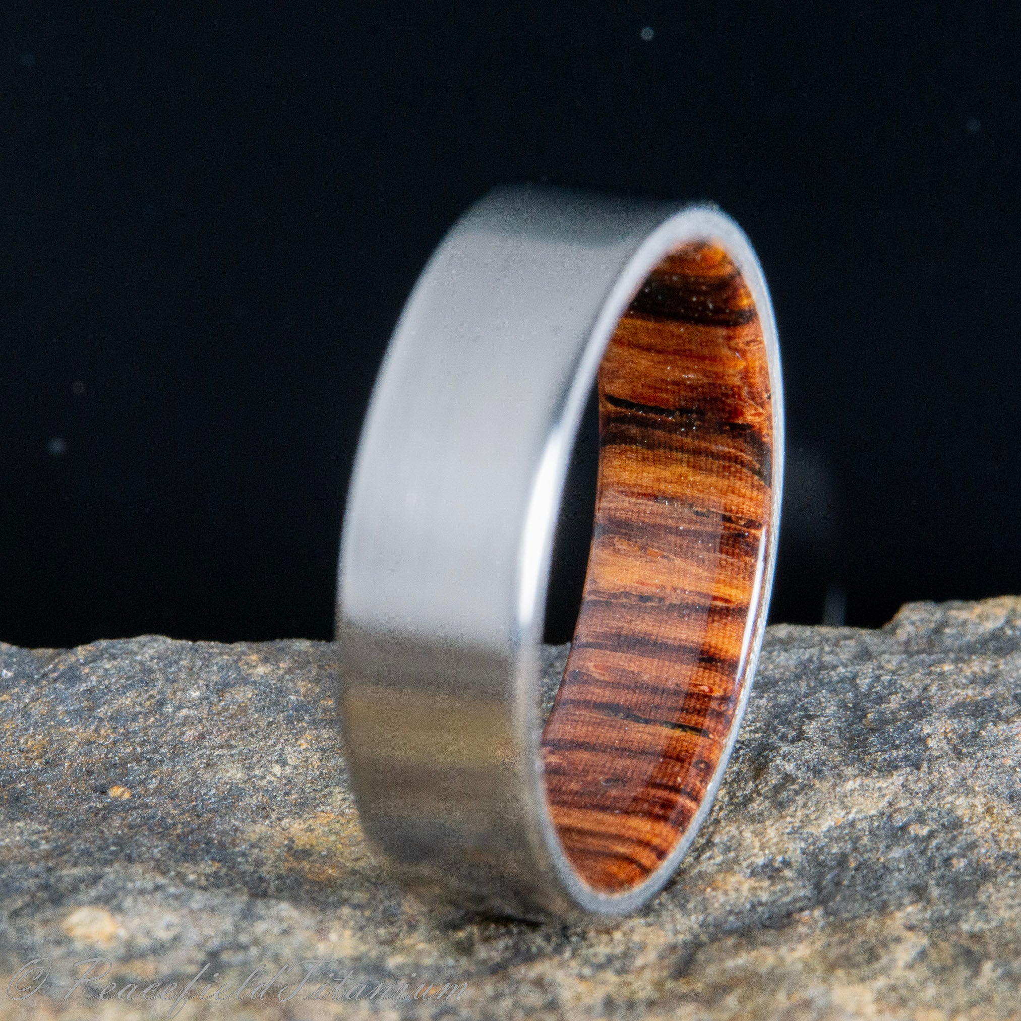 The titanium wood rings in this collection are the epitome of style and sophistication. Our titanium and wood rings are carefully crafted from the finest quality wood, offering a warm and inviting feel that is both comfortable and durable. The natural texture and unique grain patterns of the wood add an element of rustic elegance to the overall design, making these titanium wood rings the perfect choice for any ring. We have a huge collection of Wood rings here, that feature wood inlays on the outside of the ring, perfect for showing off that unique wood highlight.