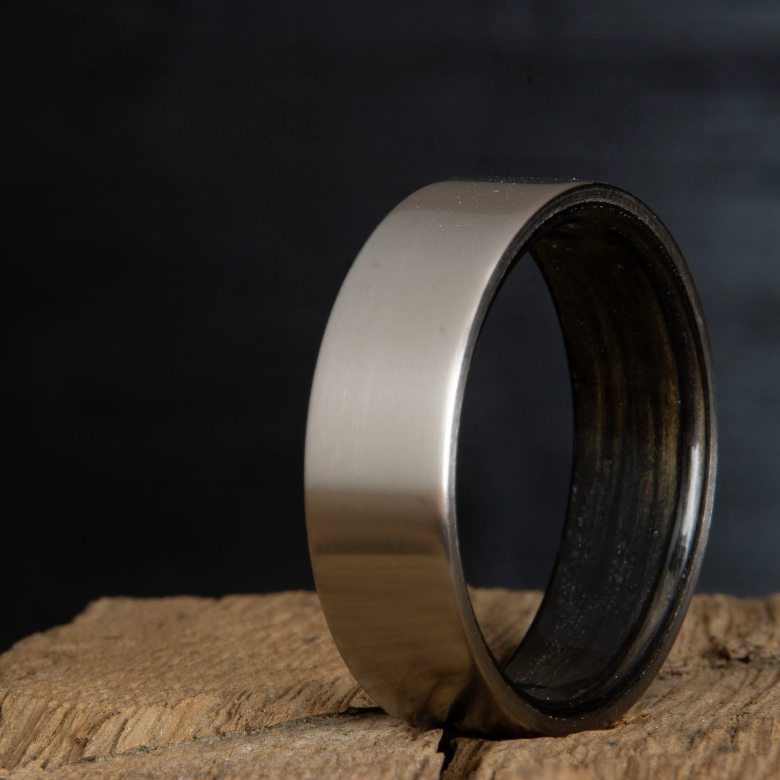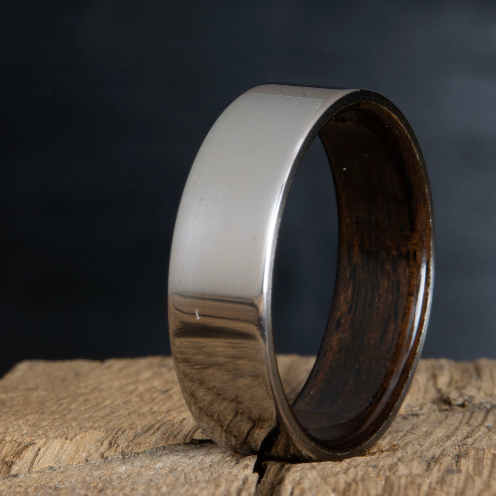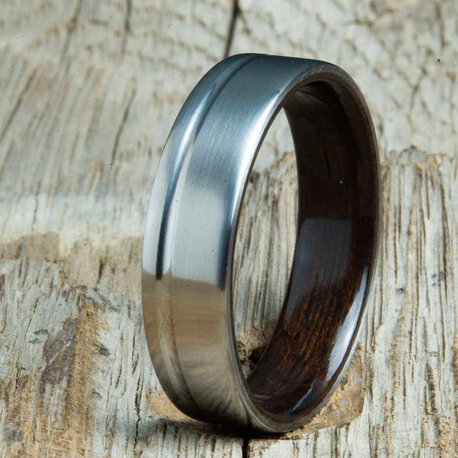 Mens titanium rings with wood